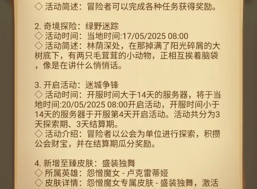 活动简述:活动将于当地时间:25/05/2025 08:00开启新一轮对战,冒险者通关关卡15-40并加入公会后可报名参与。