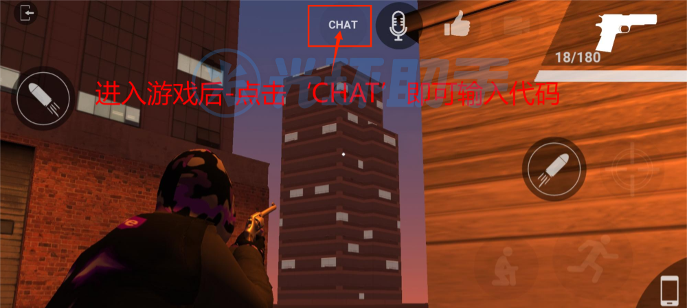 代码输入教程:进入游戏后-点击‘CHAT’即可输入代码