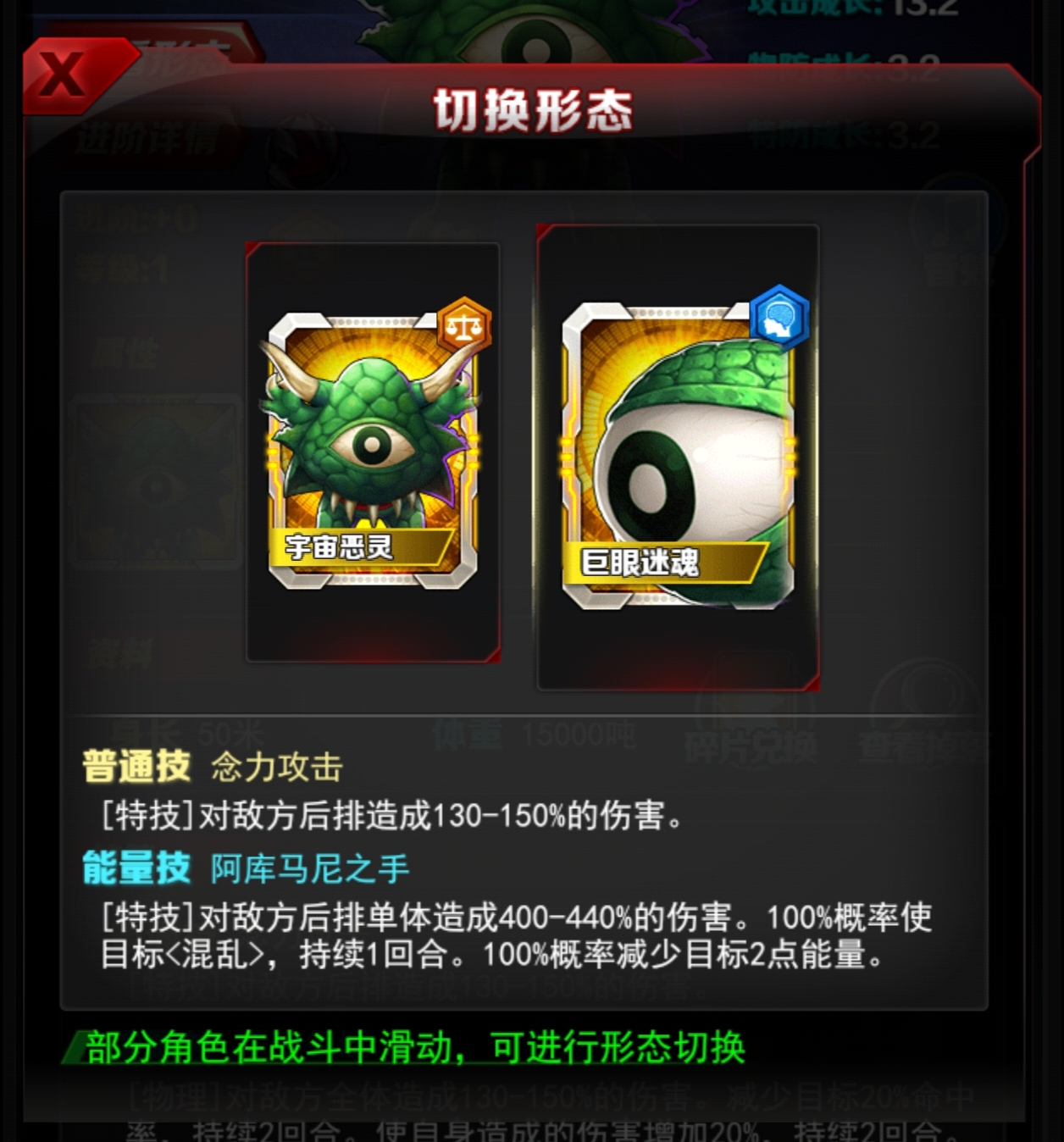 - 触发方式:战斗中滑动形态卡片切换,无消耗。
