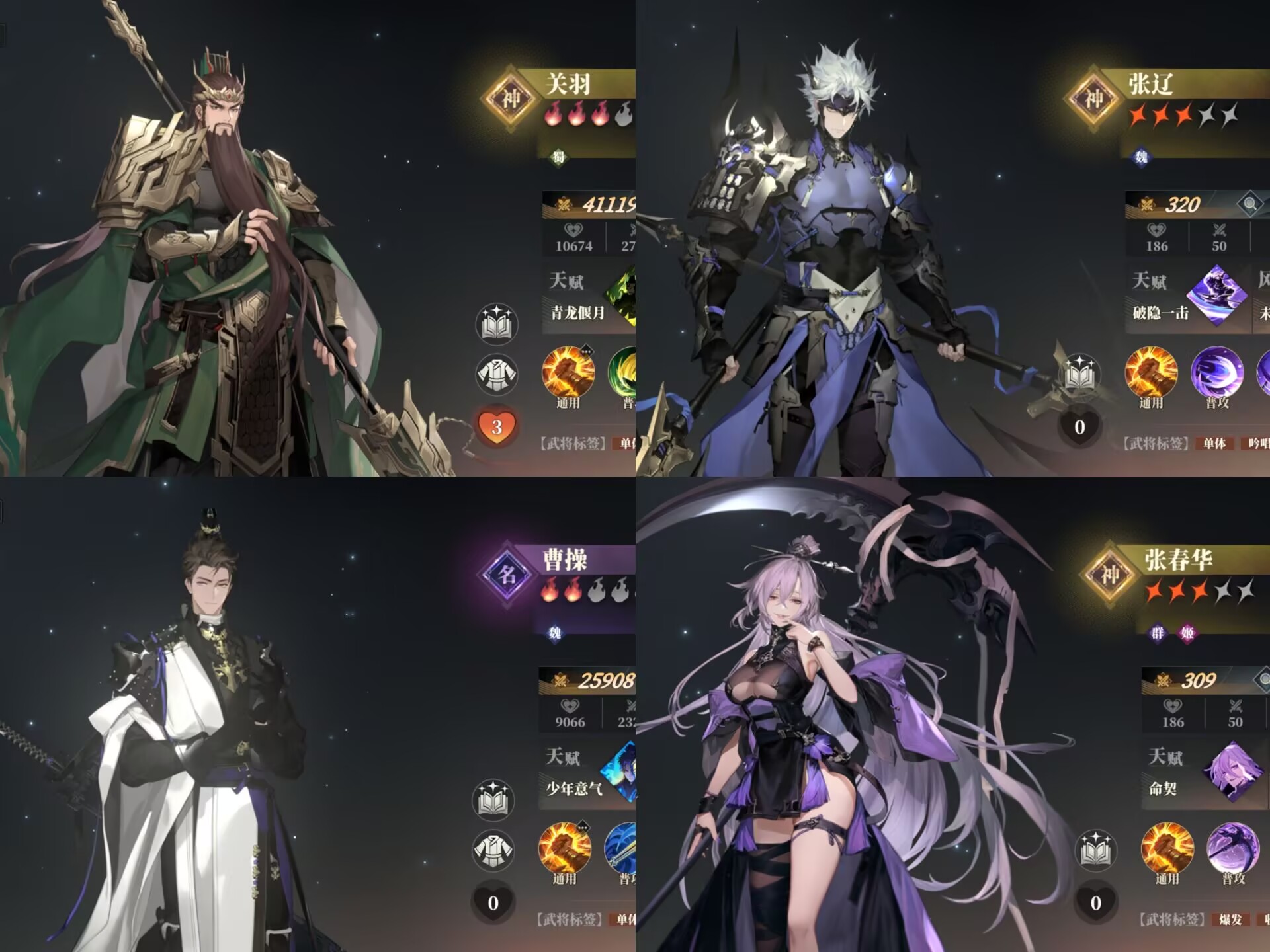 然后没有高练度春华、关羽的情况下,我们可用曹操或者邹翊、乔菱来补对单伤害。