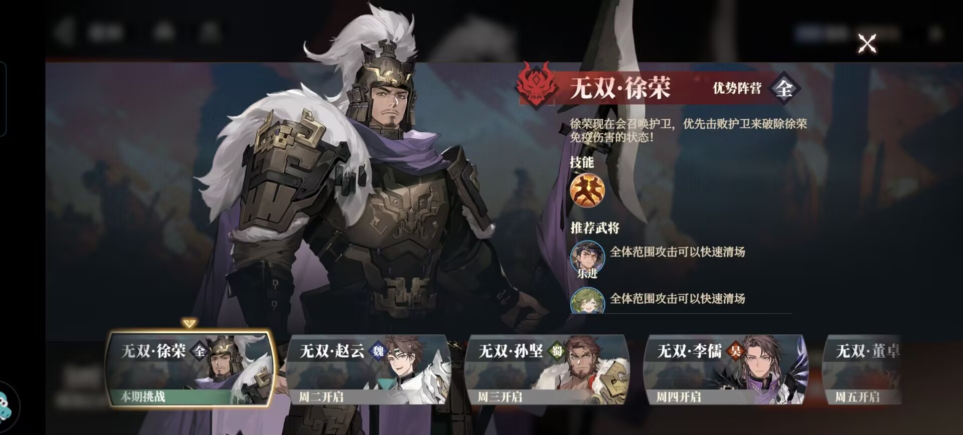 二:【历战:徐荣】武将推荐。因此我们需要使用两种类型的武将: