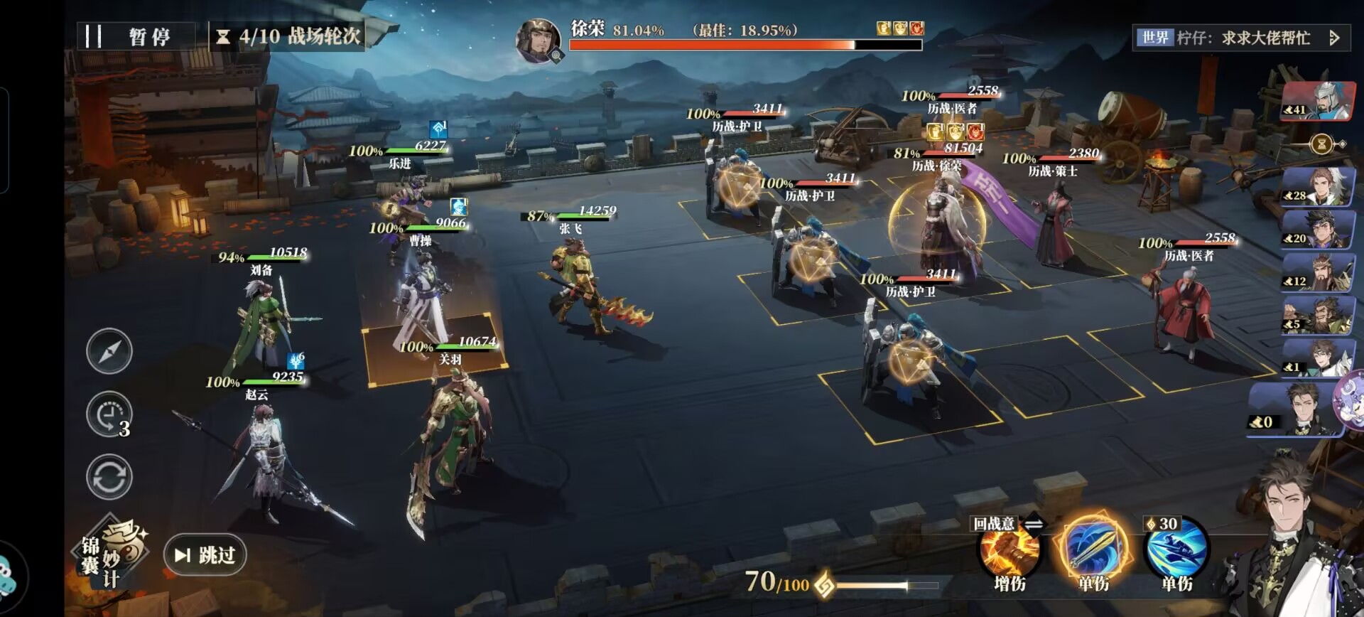 所以一定要优先击杀召唤的部下,特别是前排的护卫,我们才可以给徐荣造成大量的伤害。