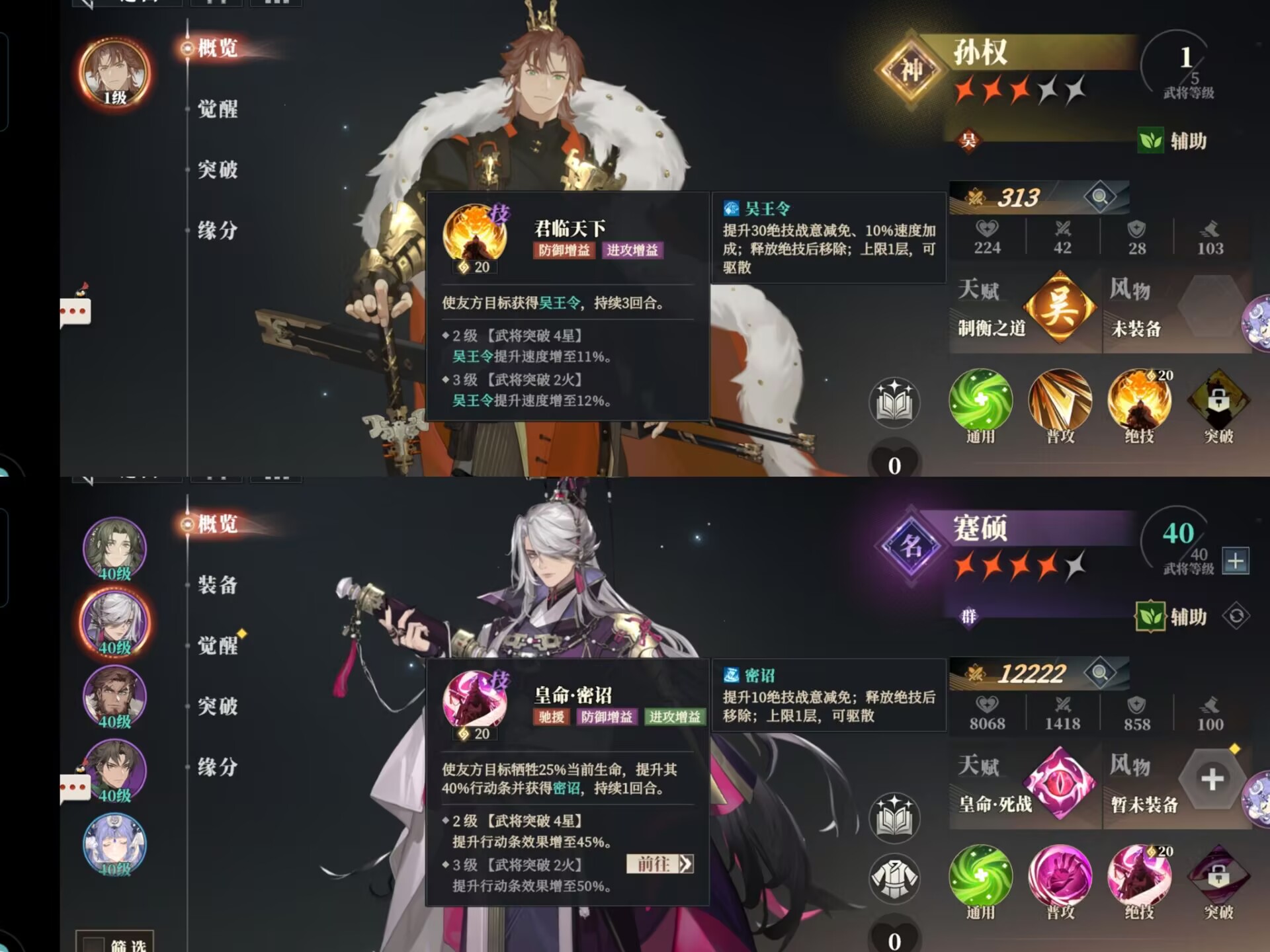 比如:【孙权】和【蹇硕】就是可以提供拉条以及战意消耗减免,非常有用。