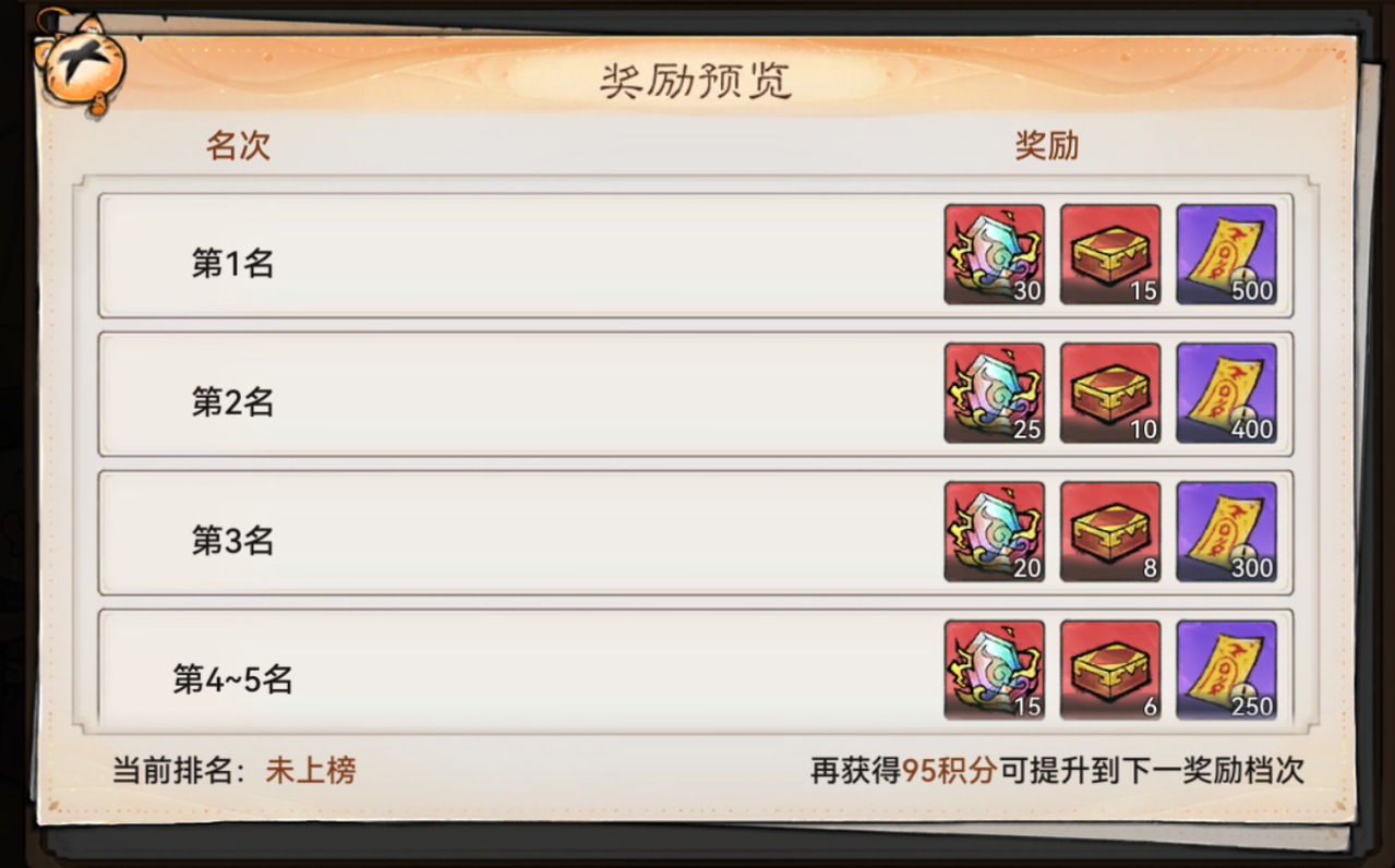 在每个比拼阶段,祖师获得的积分达到一定数量后,即可解锁无字天书、星尘石英等目标奖励。