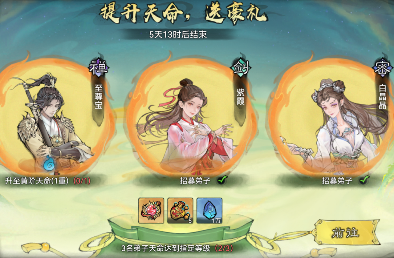 将联动弟子的天命提升至指定等级,不仅可以免费领取寻仙令、灵玉等奖励,还可以购买直购礼包,获取全新功法渡厄真经、心缘剑诀、九幽镇狱掌。![]()