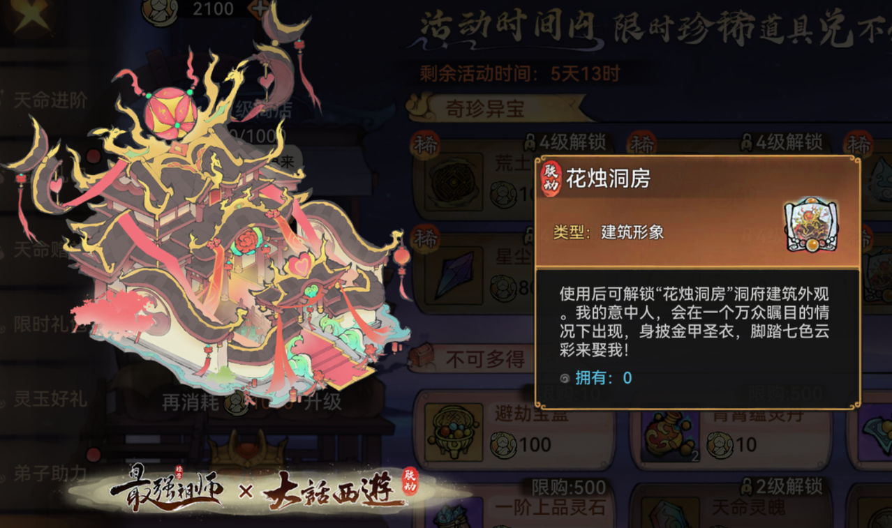 前往奇缘商店可通过消耗仙缘币兑换联动建筑形象-花烛洞房等道具。
