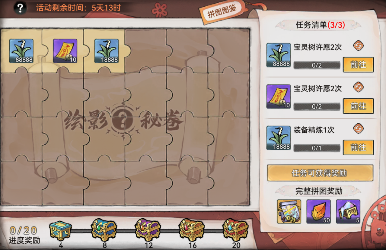 活动期间,祖师可接取拼图任务,完成后可获得奖励。