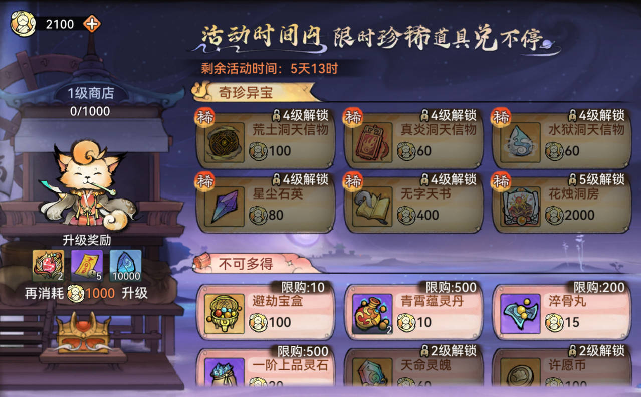 活动期间,祖师每消耗1枚寻仙令即可获得10仙缘币。