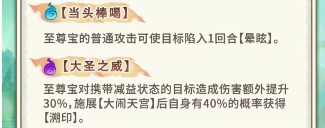 可以让至尊宝普攻让目标进入1回合晕眩!