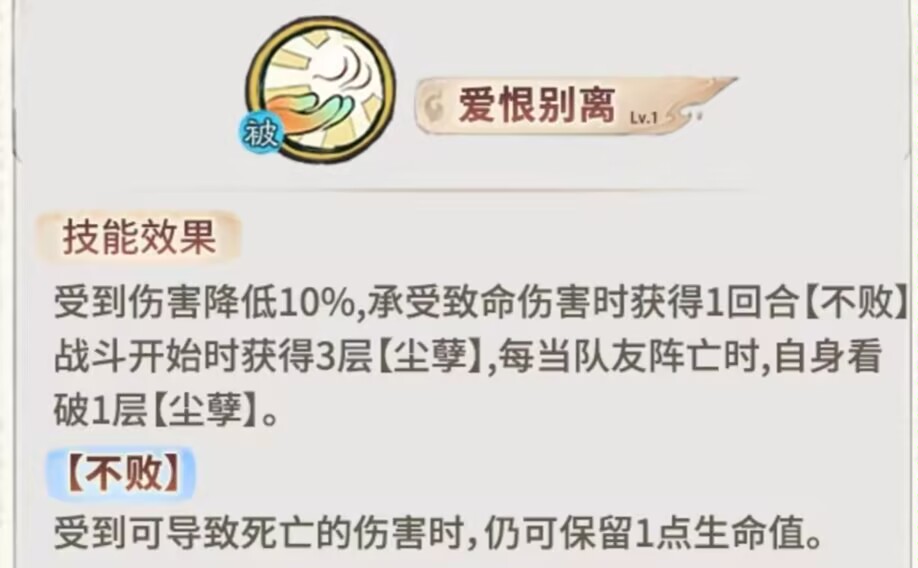 战斗开始直接可以获得3层【尘孽】队友死亡一次就可以看破1层【尘孽】。