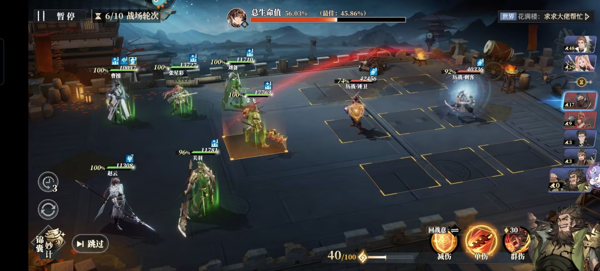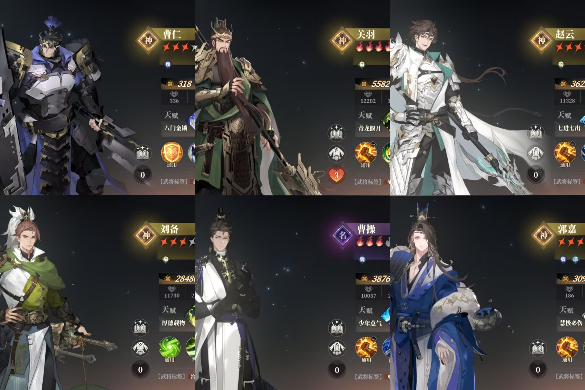 ③蜀国高伤队。曹仁+刘备+关羽+赵云+郭嘉+曹操/孙权。