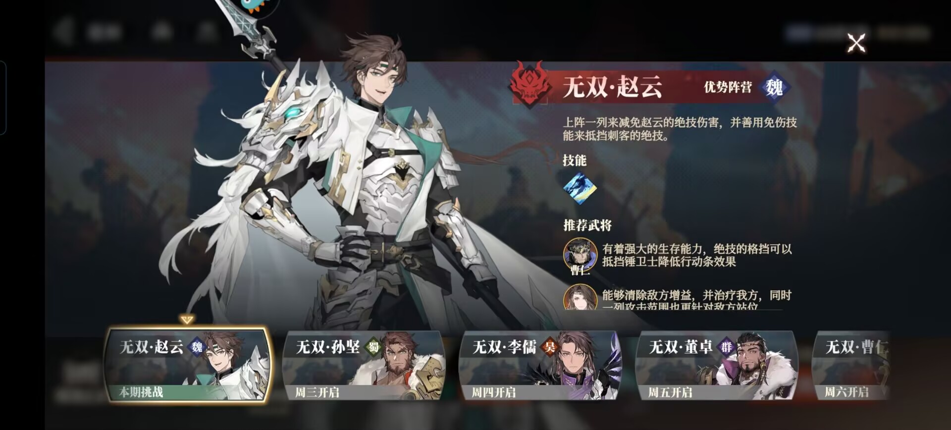 二:【无双:赵云】武将推荐。其实赵云什么阵容都可以打,主要看你自己练的阵容。