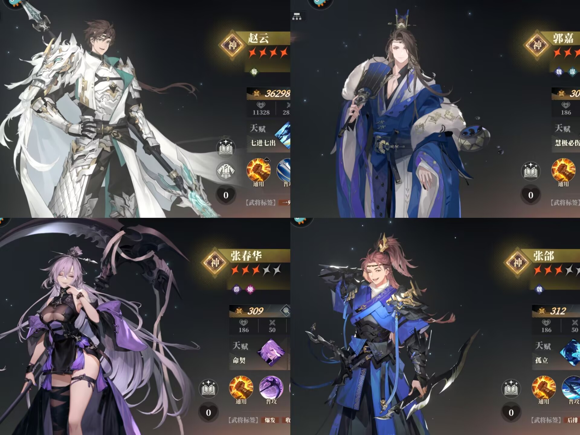 刘备维持队伍的续航回复,赵云配合郭嘉的对列伤害非常好用。