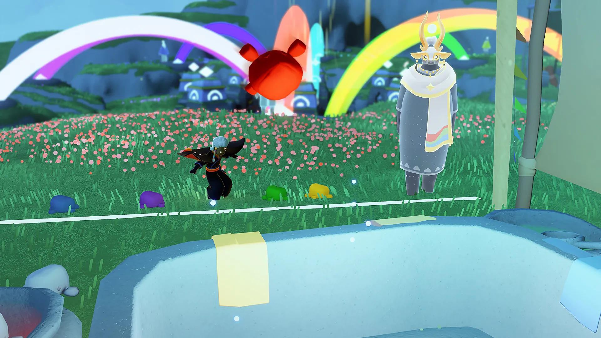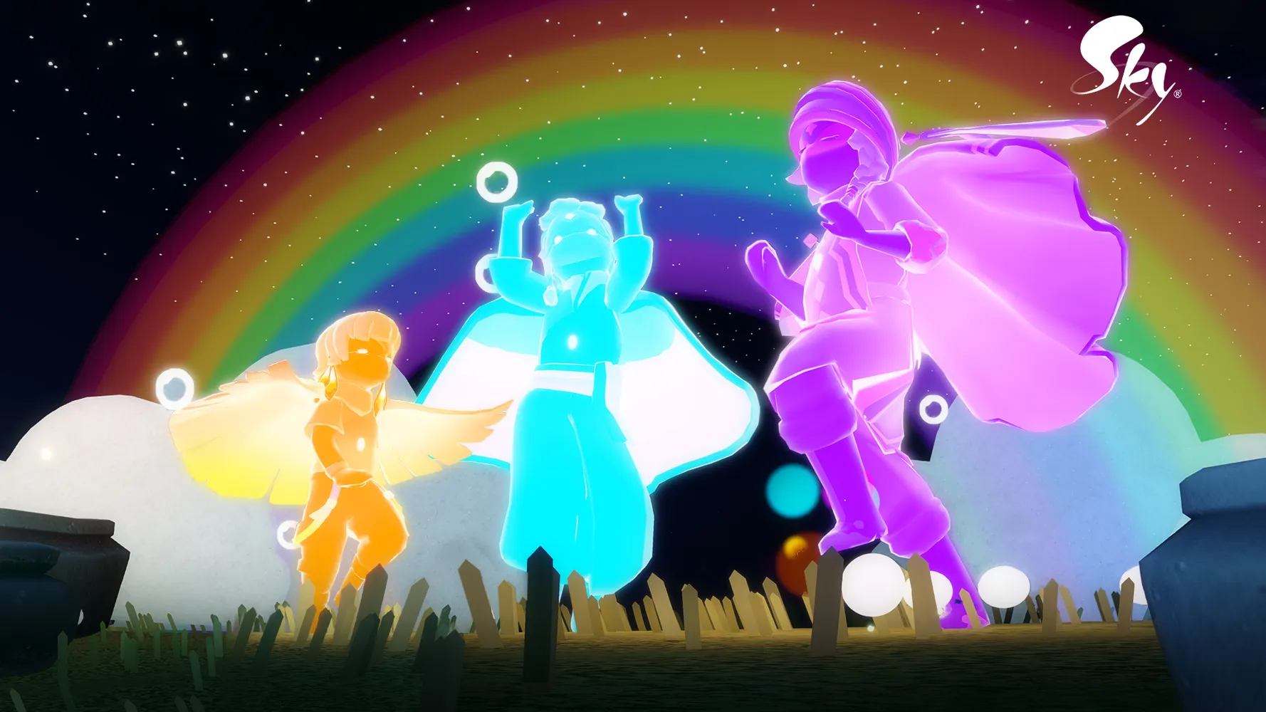 当你进入游戏时,两个灵魂等待着你,准备把你带到云层上方明亮宽敞的区域,举办今年的庆祝活动。当你在活动区域翱翔时,Spirits将为所有Sky的孩子们带来新的和返回的物品,让他们从中选择他们最喜欢的纪念品。