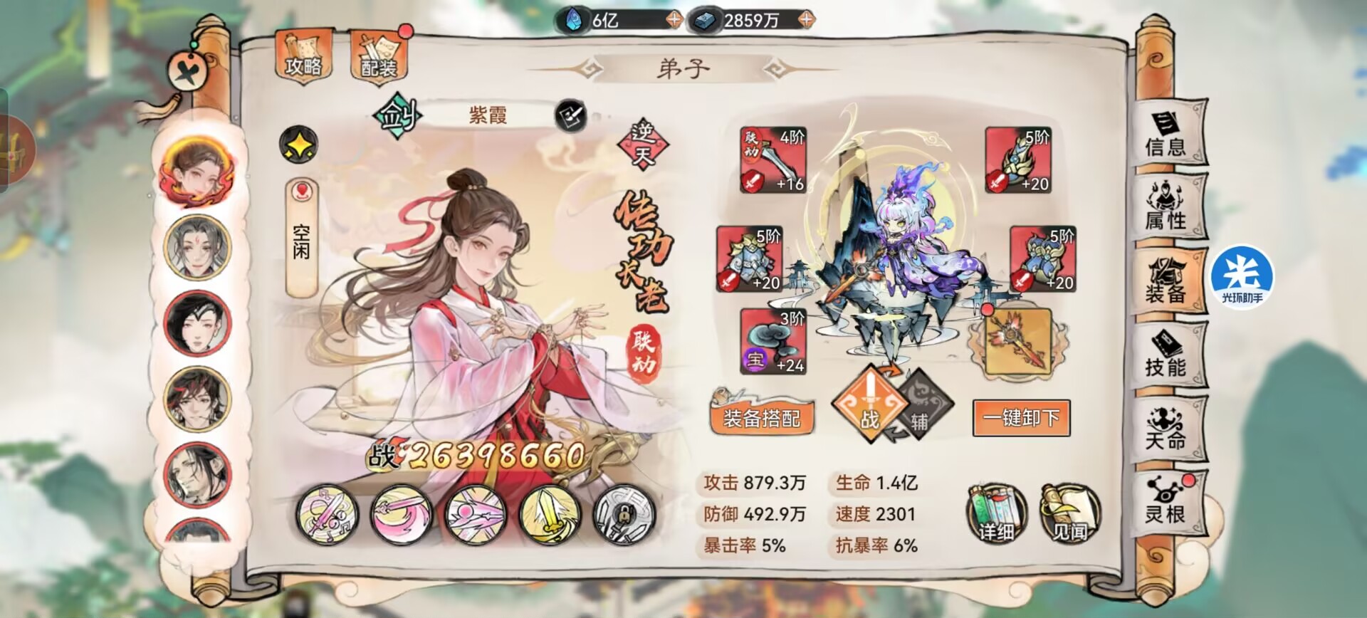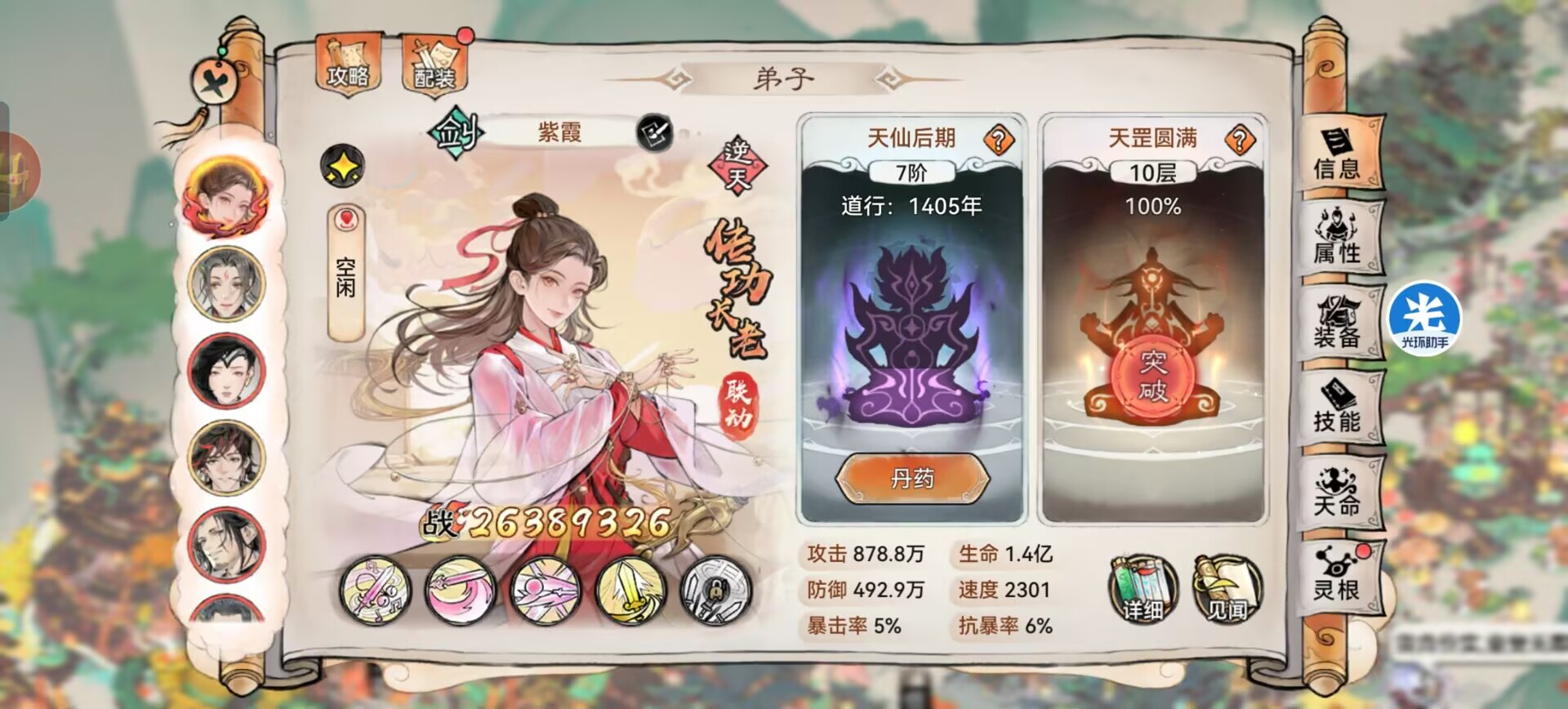 本期狮子给大家带来的是【紫霞仙子】阵容搭配以及装备法宝道兵等搭配,希望能够帮助到大家!