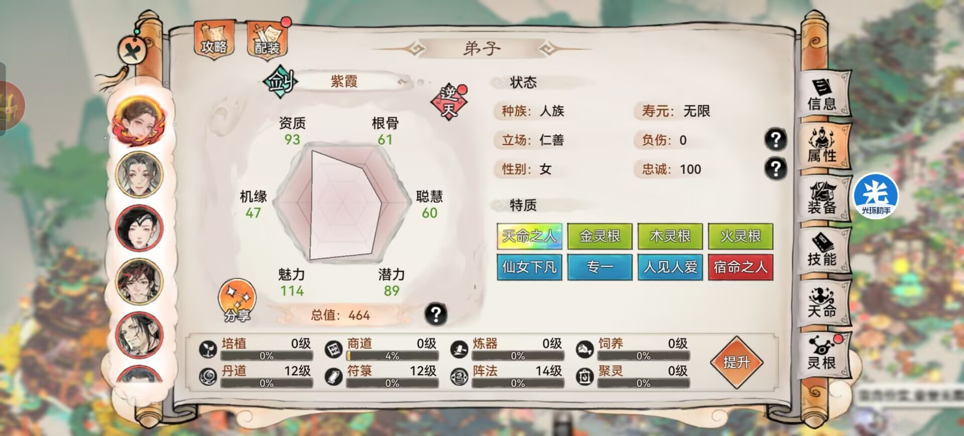 一:【紫霞】玩法解析+推荐。紫霞是有三种灵根的分别是:金、木、火。