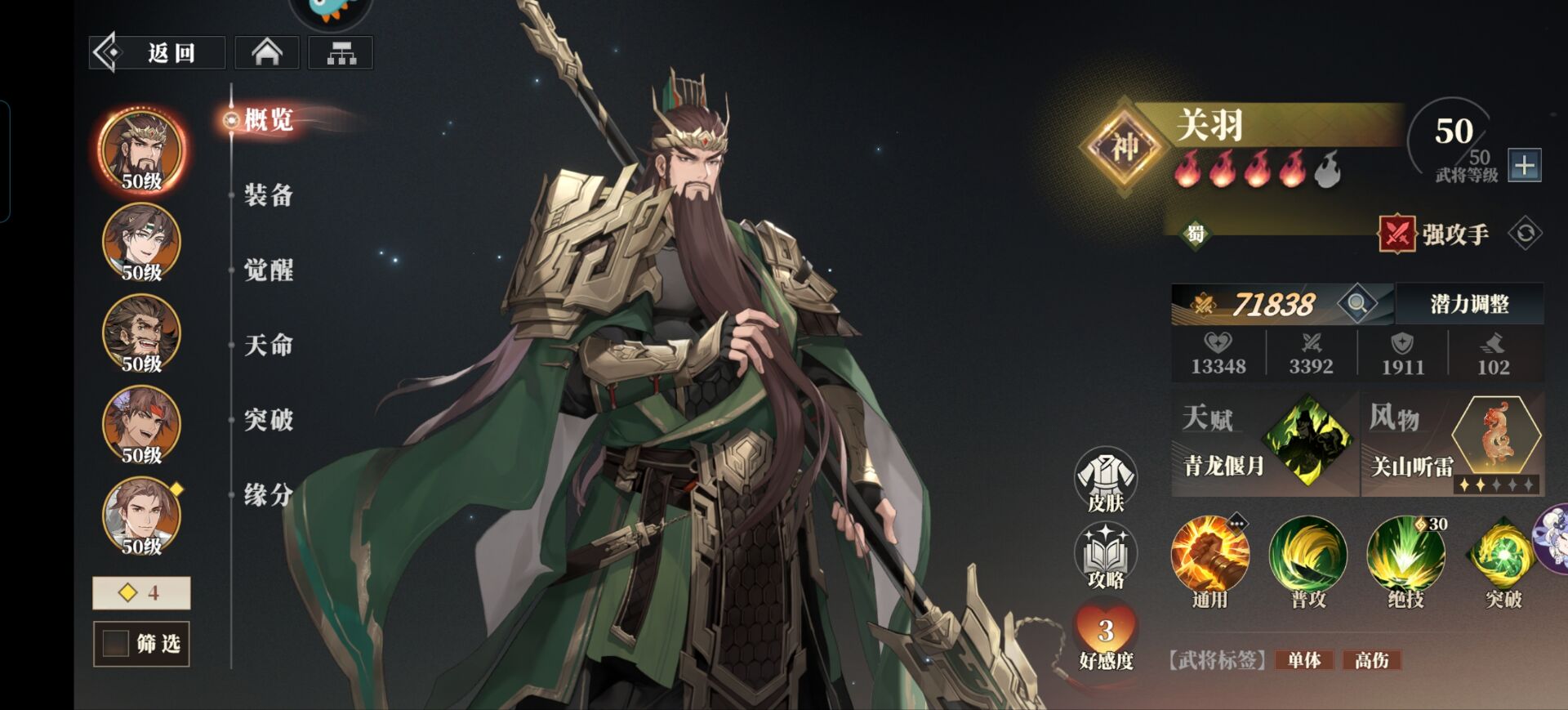 天命对我们武将来说是个非常质变的提升,能够提供大量的属性加成,让我们整体的实力得到飞跃的提升!