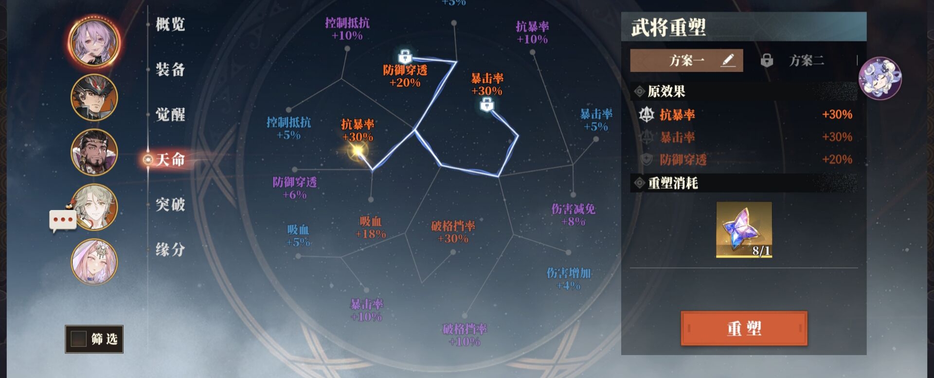 ps:不过想洗出完美的毕业天命组合很看运气,而且需要大量的资源去洗。现阶段平民玩家只能设想,因为没有那么多资源……