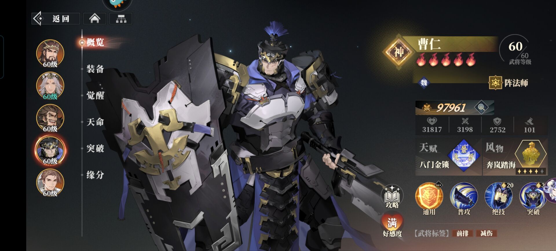 而肉盾型的武将肯定是优先选择能够增强自身生存的天命,从而在队伍中能够更好的发挥作用,保护好后排。