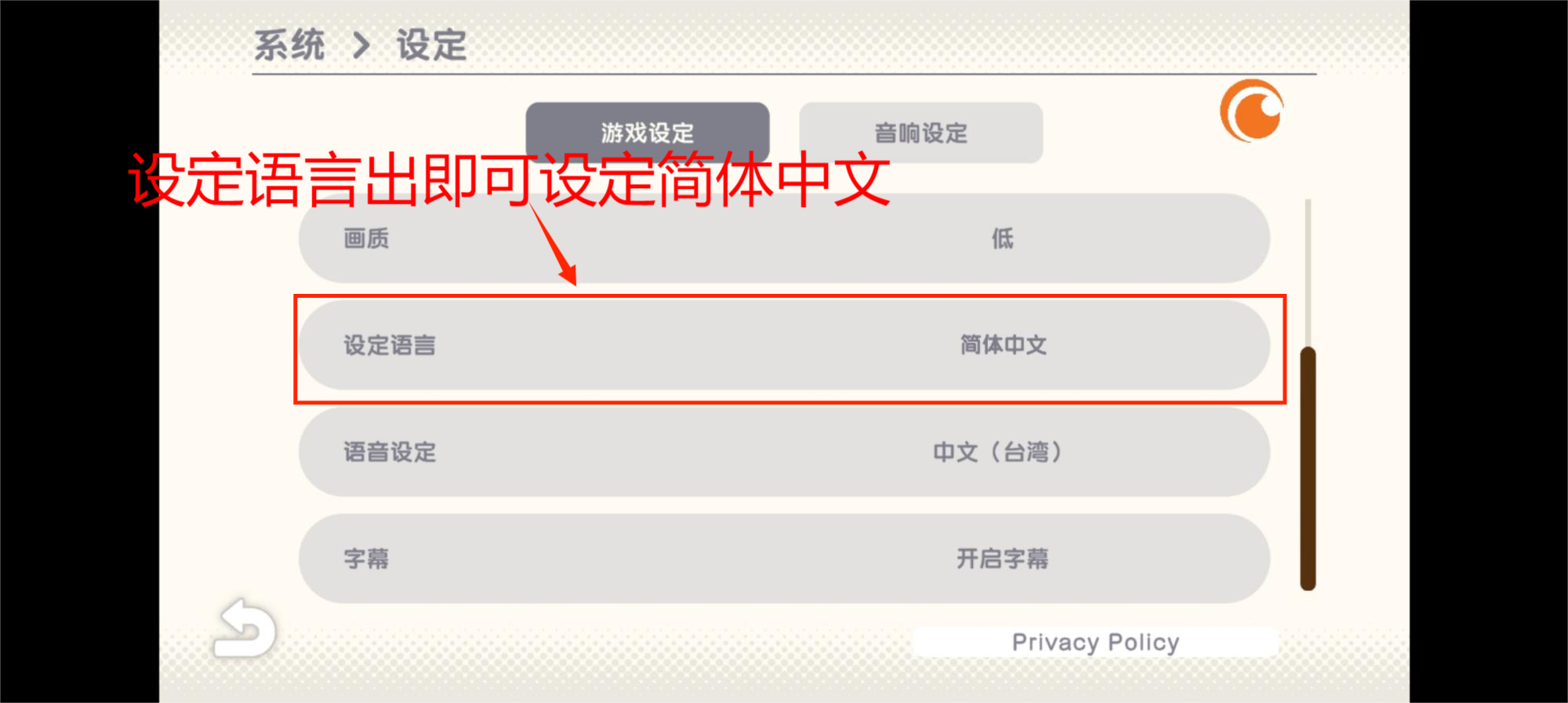二、中文设定:游戏界面点击齿轮图标→语言设定可切换成中文