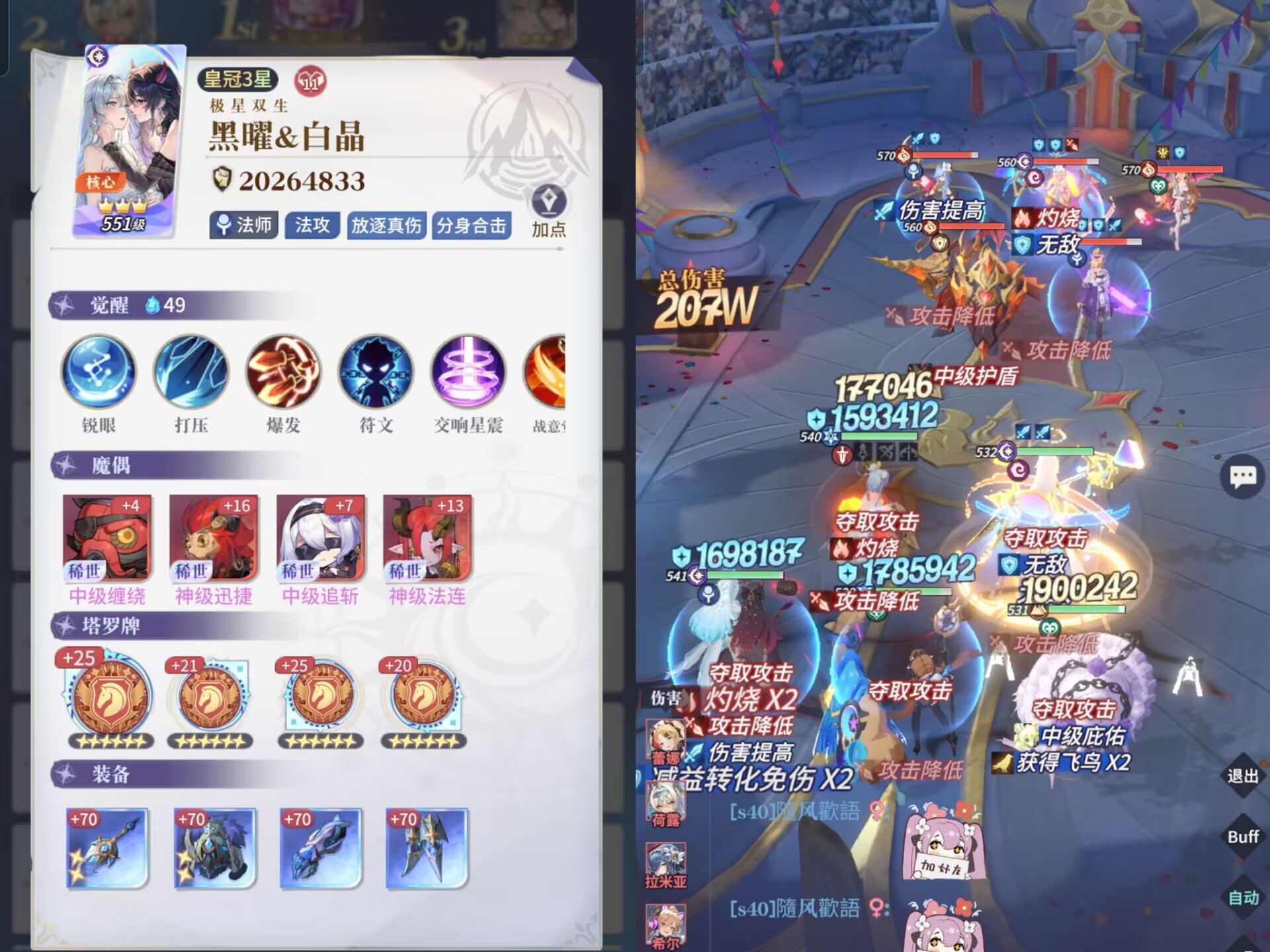 这套阵容一样有生存、有续航、有伤害、有控制!黑耀白晶的加入非常好提升了大地阵容的强度。