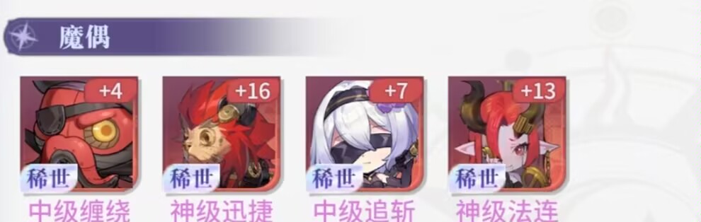 1:【魔偶】推荐:缠绕+迅捷+追斩+法连。