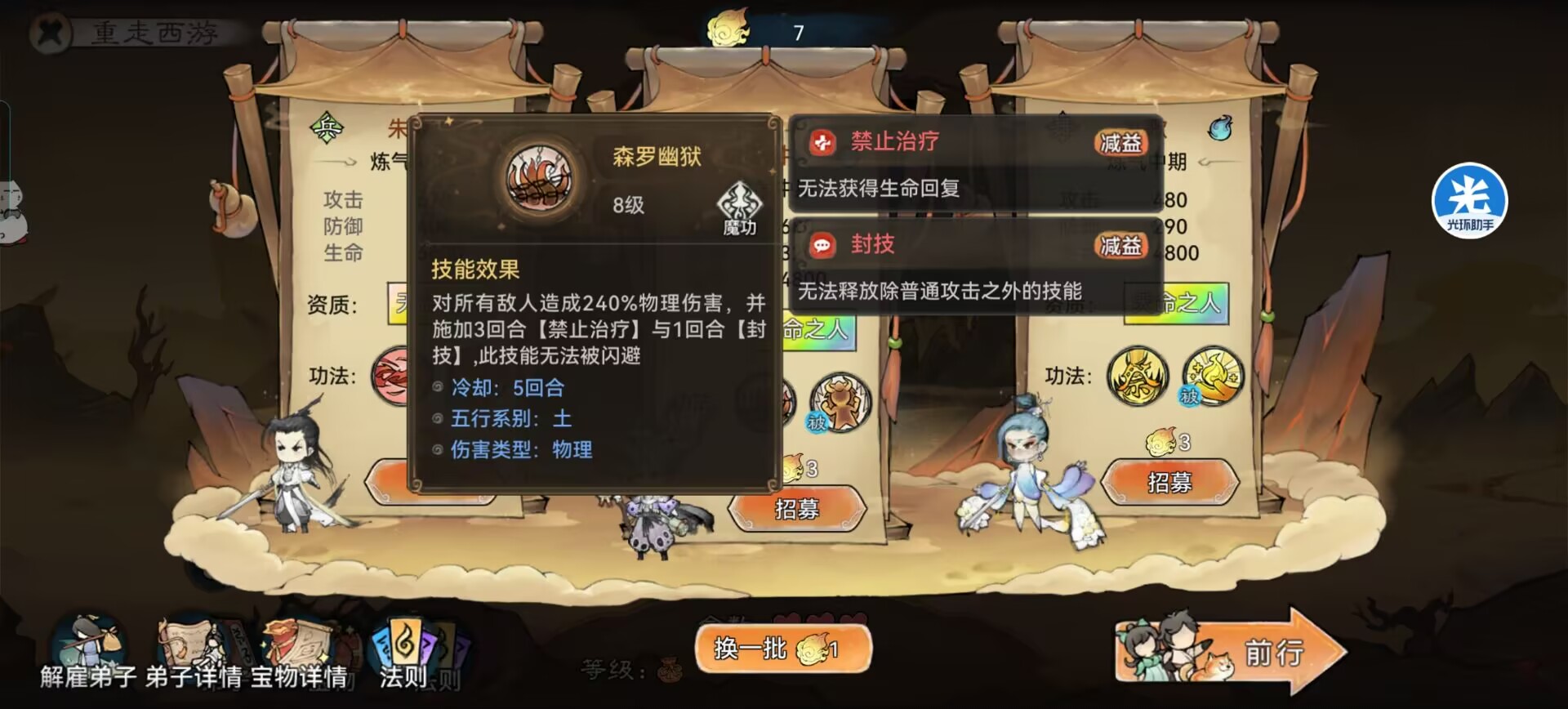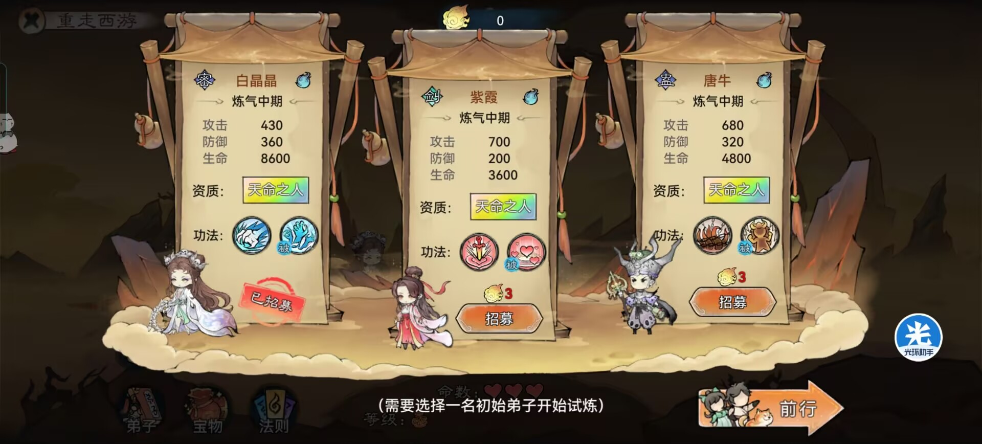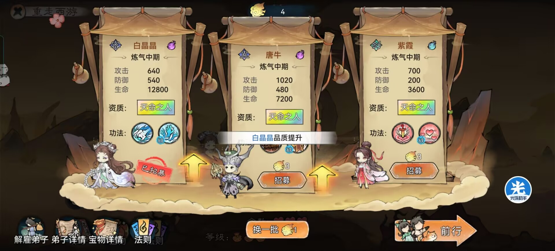 ②前期多刷新弟子,刷出我们核心弟子才是关键。