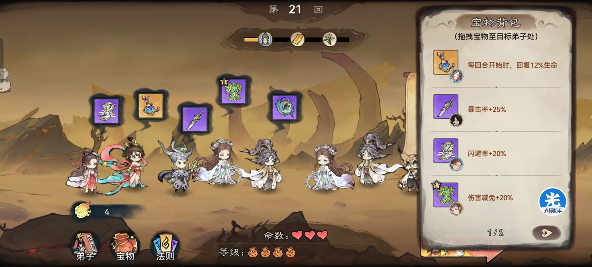 以上的前期的宝物可以参考,然后结合自己在实战中遇到的宝物来调整,不一定要按狮子的搭配来。