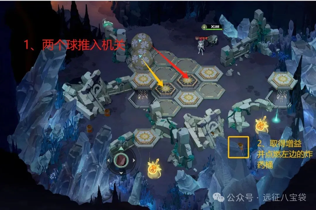 先把两个球推入机关,取得内部的增益和点燃炸药