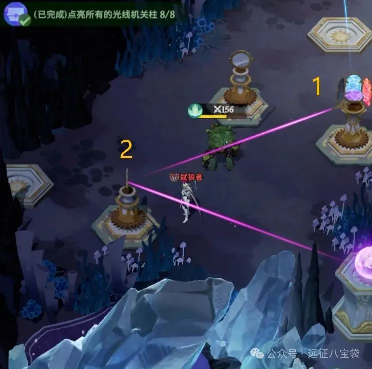 进洞后按八宝标记的数字顺序清怪、捡钥匙