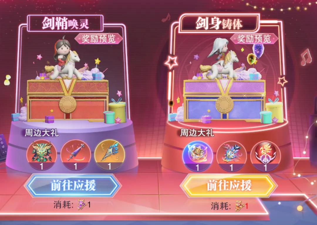 由于此次的应援活动官方是做了一定的简化,只会持续1天的时间,因此部分规则也会比过去的应援活动简单一些,其中可分为两个秘藏,分别是剑鞘代表的普通秘藏和剑身代表的高级秘藏。