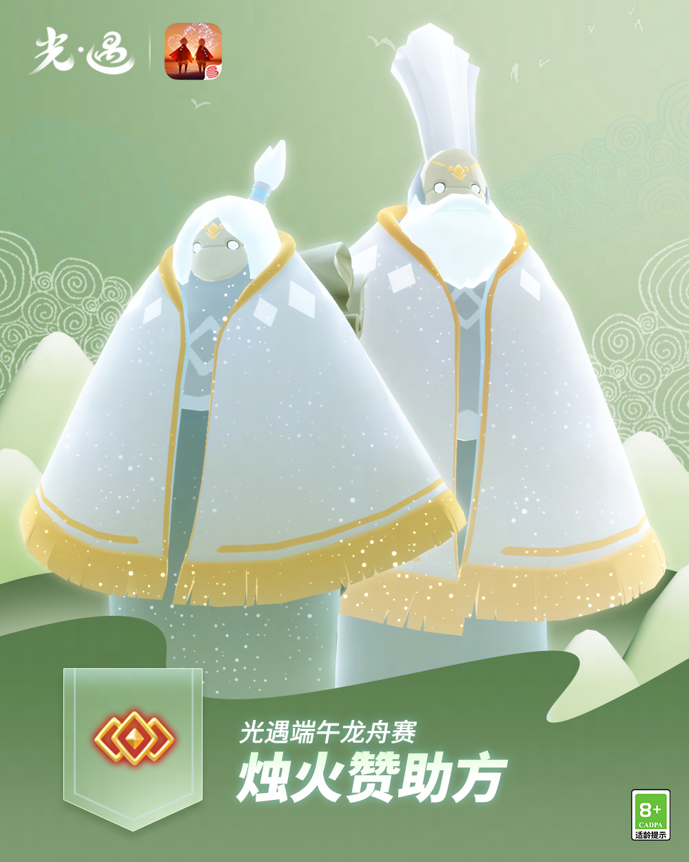 《光·遇》端午节队伍介绍丨烛火赞助方是泽哦发布于 05-26关注压轴出场的是烛火赞助方——来自归属季的先祖们他们准备了丰厚的烛火奖励将在比赛结束后为所有光之子送上温暖祝福至此,光遇端午节的所有队伍已经介绍完毕让我们共同期待比赛开场吧!