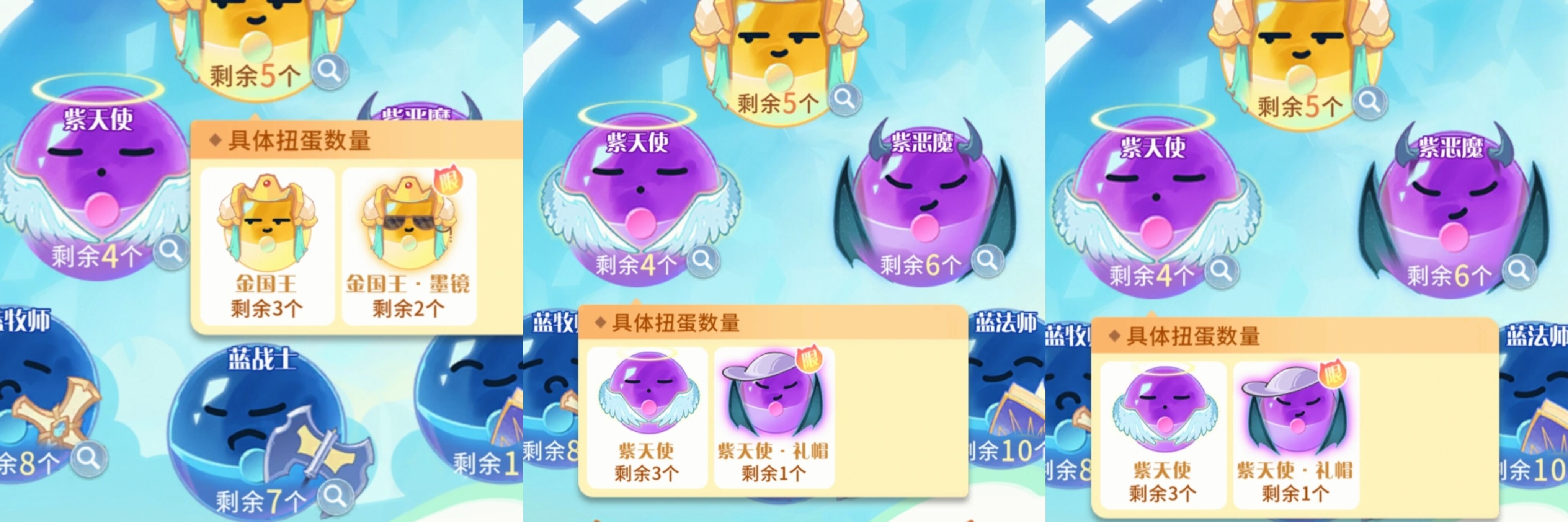 ①金国王蛋 ②紫天使蛋 ③紫恶魔蛋。