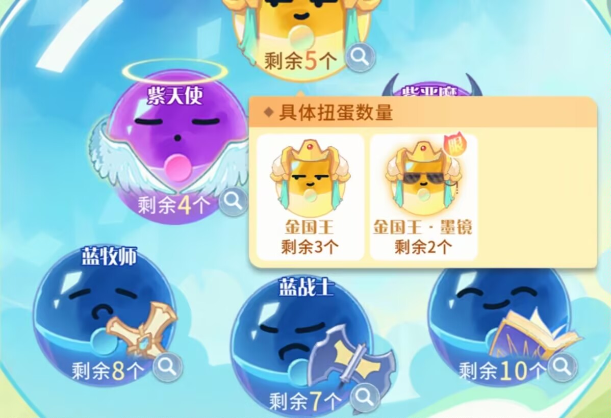 ⑨任意蓝限定+2个蓝色普通蛋=50钻石。