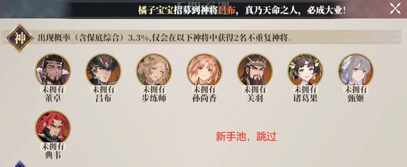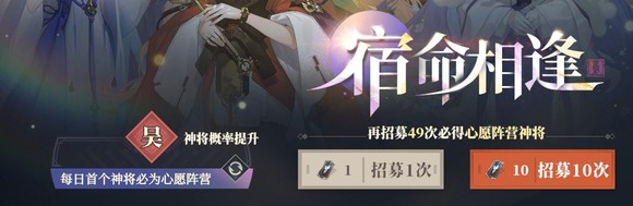 普池阵营up池:当日首个橙卡必为up阵营,之后开始随机,因此建议白嫖和小氪玩家,在当天阵营心愿获得后,停抽等次日。(你怎么知道我吴国up池子,出了关羽)