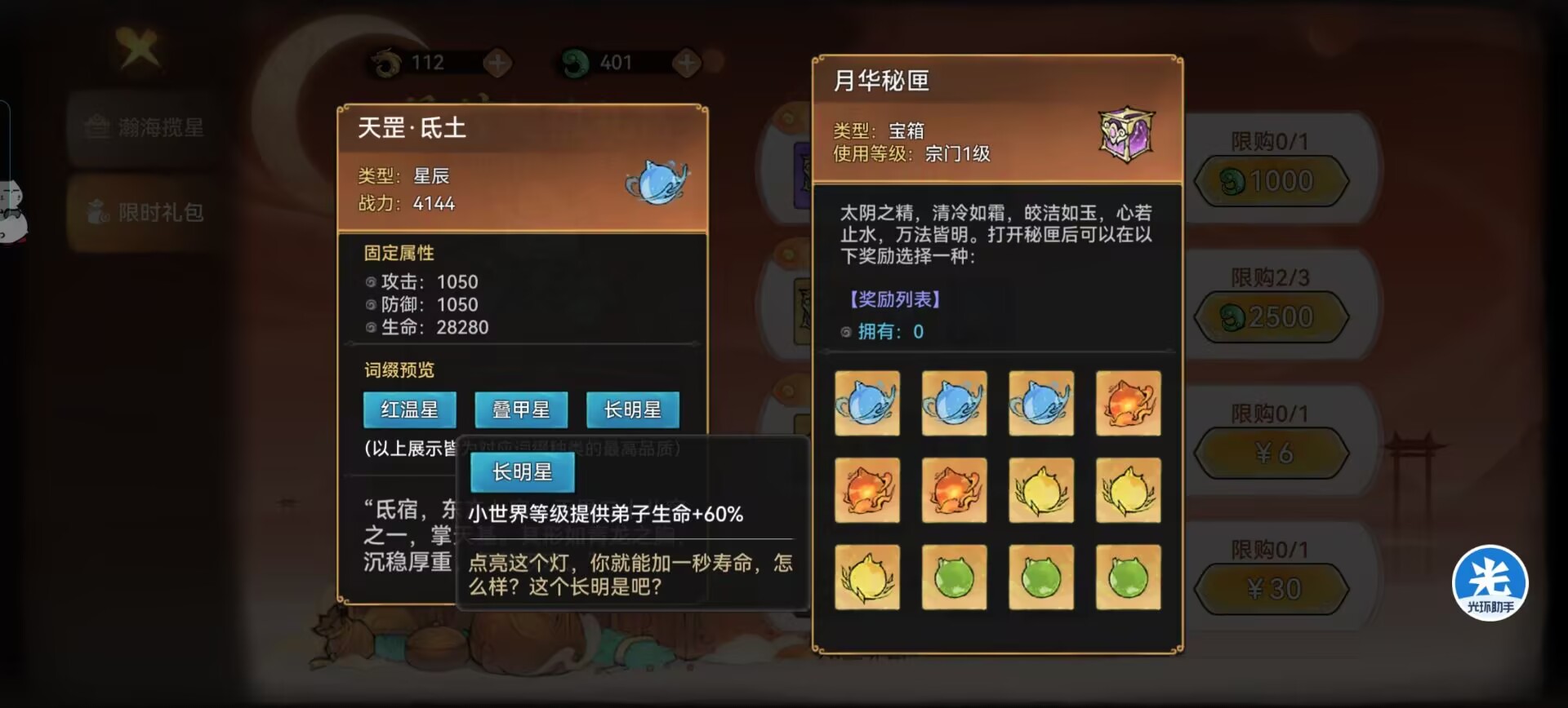 简而言之:星辰就是可以提升弟子属性战力、提升宗门产量、提升军阵属性、提升对仙界魔物和仙墟伤害等等的作用。