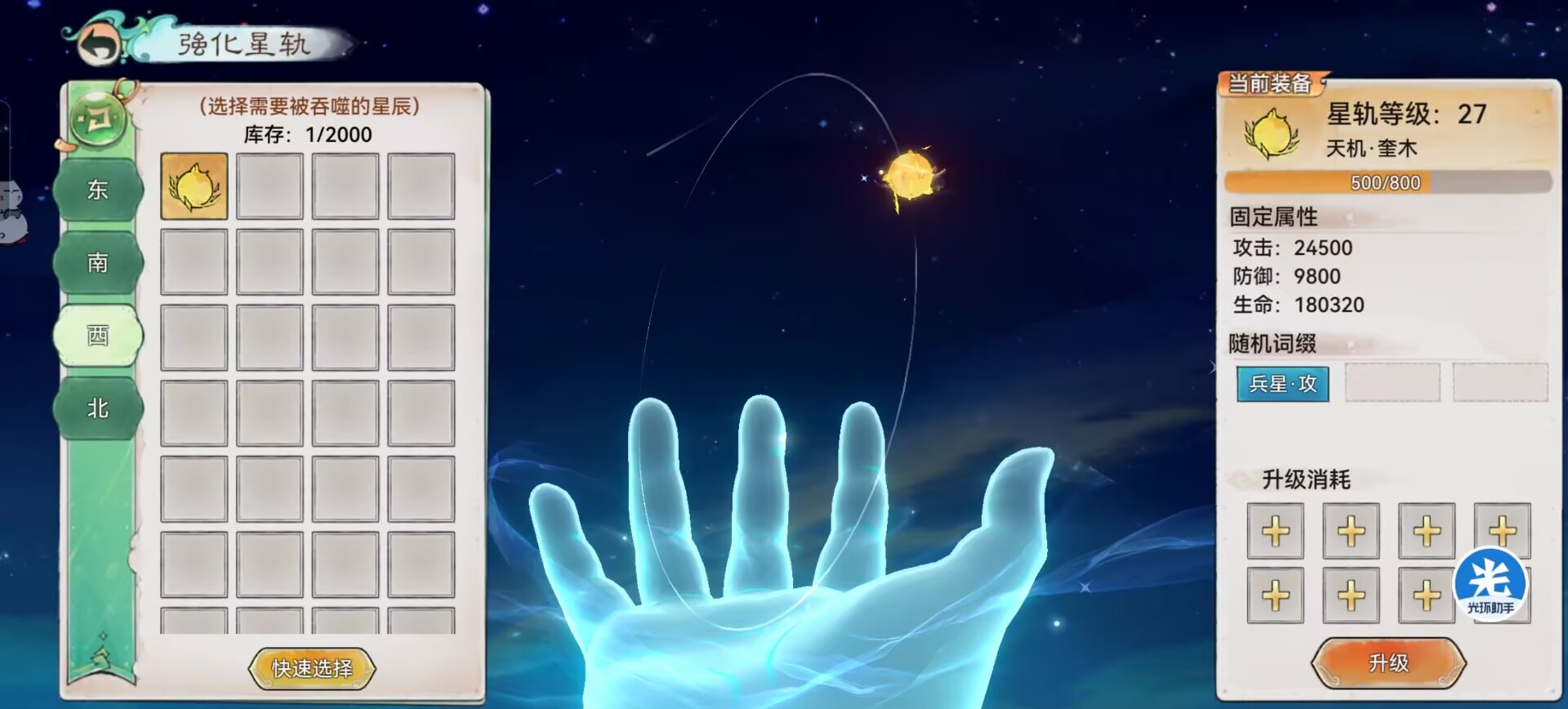 强化星辰的时候,因为手动很麻烦!很多祖师会选择快速强化!