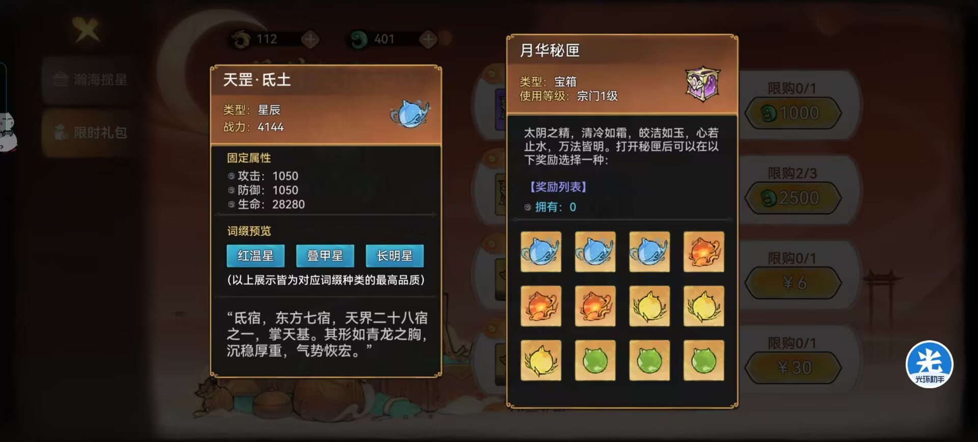 天罡氐土和天罡亢金的词条,所以不是很推荐大家优先选择这个星辰。