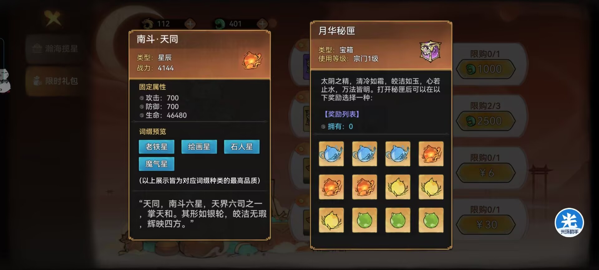 ②选择建议:这里狮子推荐大家首选:【南斗天同】因为可以提升玄铁、阵石、符纸等核心资源产量。