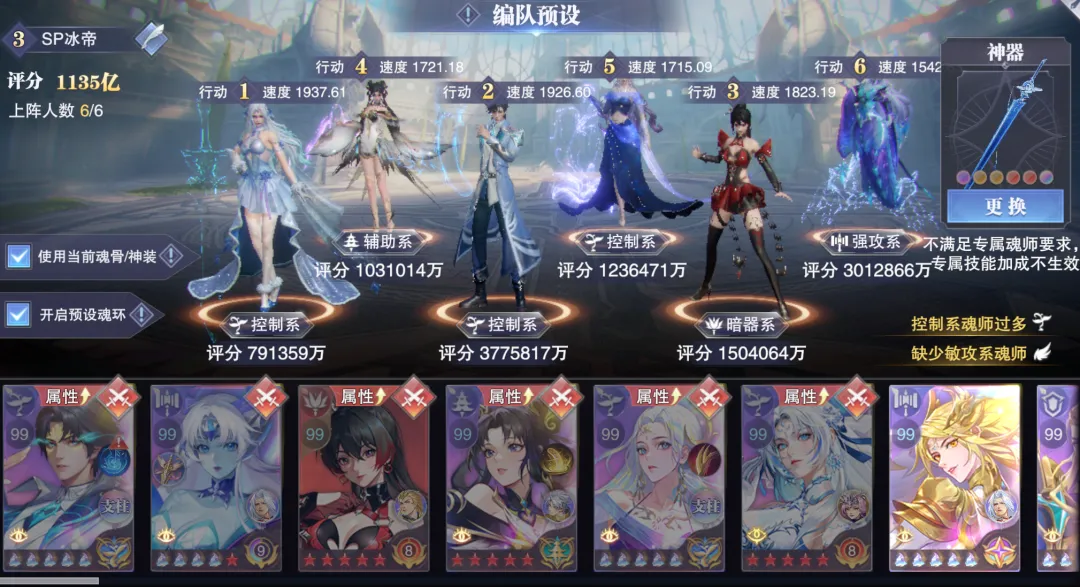接着则是第二组,咱们带上SP阿银的源魂心,接着源魂心的等级配置为40级,这个等级也是激活SP源魂心的门槛等级,接着用SP小白替代SP阿银,凑出5条鱼和7情绪等配置,然后这个阵容能打出的伤害约为7亿²⁵左右,足足比三控两辅阵容低了10亿倍......起先维一看到这个数据的时候还觉得有些不可思议,接着连续测试了多场战斗后其成绩都给这个差不多......这就尴尬了,所以维一才会展开第三组测试,到底达到什么样的配置其才有可能超越三控两辅呢?
