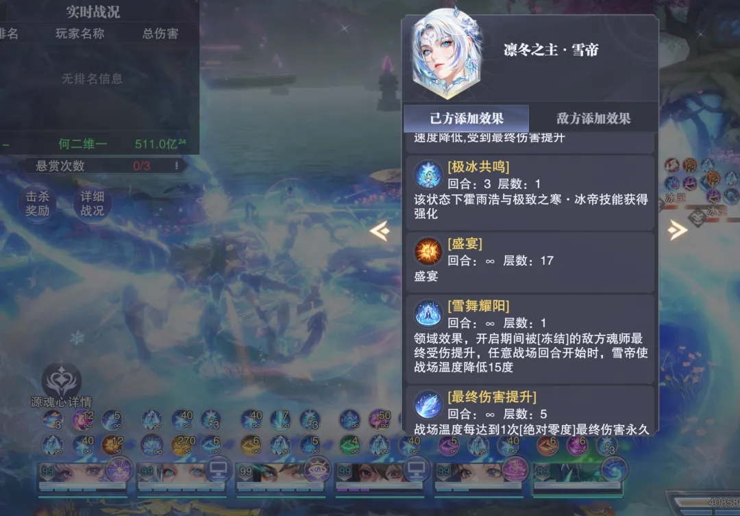 那么今天有关于SP阿银源魂心的测试维一用的依然是SP冰帝的长图队伍,打的副本为世界悬赏的敏攻系5桩boss,天气为烈日,测试队伍的战力约1100亿,等级为99级,几组对比组的区别分别在于,第一组是完全不带SP阿银的源魂心,就用三控两辅阵容来打,第二组则是带SP阿银的源魂心,然后用SP小白替代SP阿银上阵,接着同时调配出5条鱼和7情绪等配置,第三组则是不断提升SP阿银源魂心的等级,看看到底达到哪一个等级后才能稳定超越三控两辅的阵容。