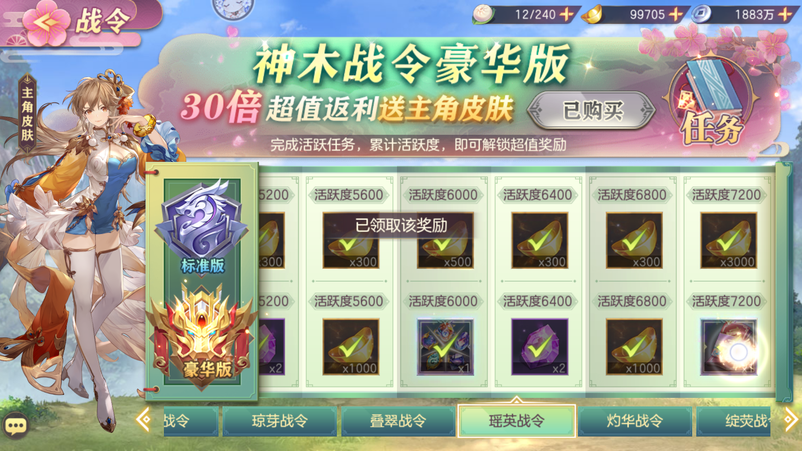 ⑥不含主角时装的神木战令:3.5星,重氪推荐星级可以升至4星