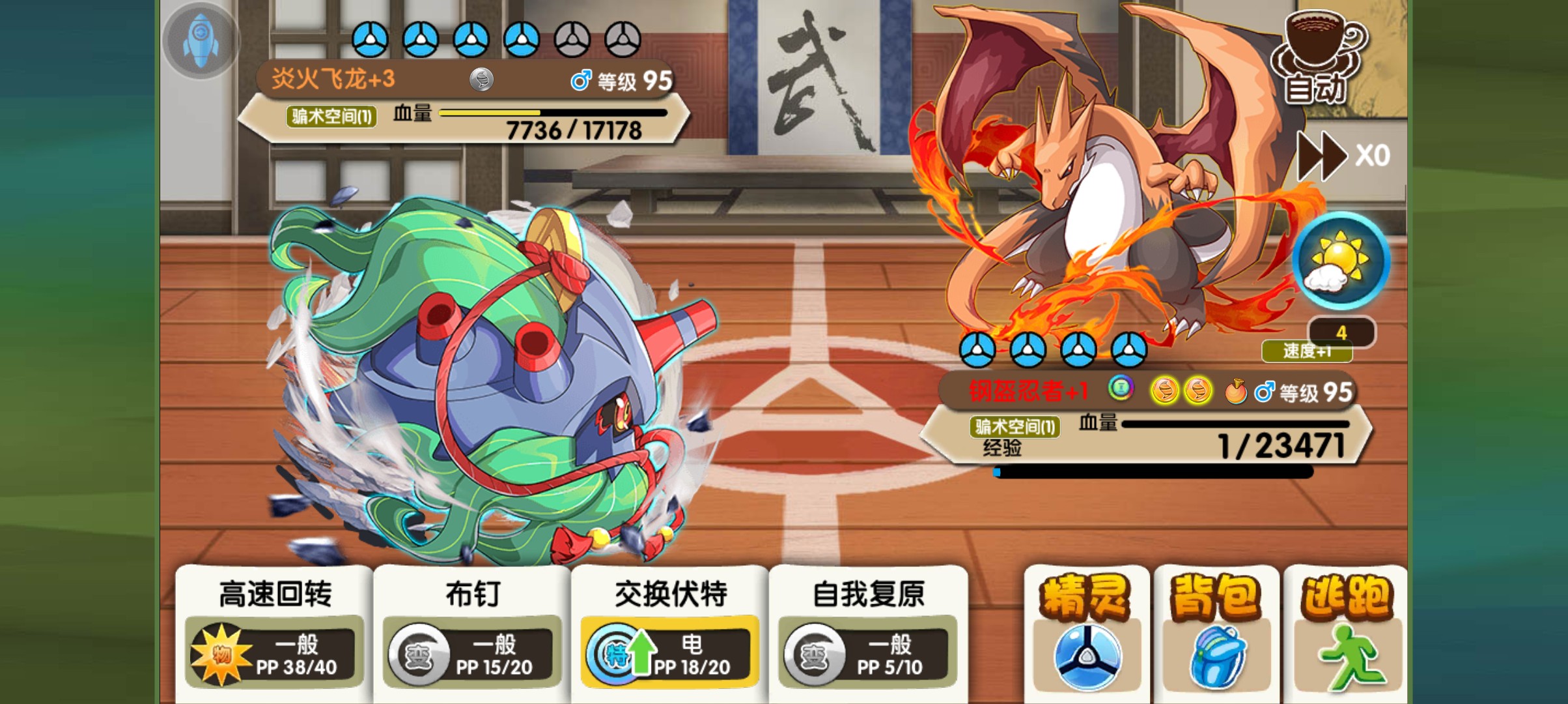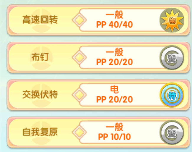 其余技能的话和老版本的没有区别,就是高速回转逃脱加上钉子,不过,由于自身精灵的机制是一个反伤机制,所以在自身释放钉子的时候,对方可以说是相当难受,因为对方想要解除钉子的话,当前版本最常见的仍然是高速回转,和这个万速旋转,而这两个恰巧也是这个攻击招式打过来的话,自身会受到反伤效果,所以一般情况想都不敢轻易的去打钢球,而钢球的话可以肆无忌惮的顶着对方的解除钉技能去铺钉,但是缺点的话就是自身也容易怕被抓,虽然说有陶泼技能,但是这个逃脱技能,但是有免疫的遇到地面属性的宠物就报废了,特别是当遇到这个地鼠或者是沙漠蜻蜓的时候就很难受