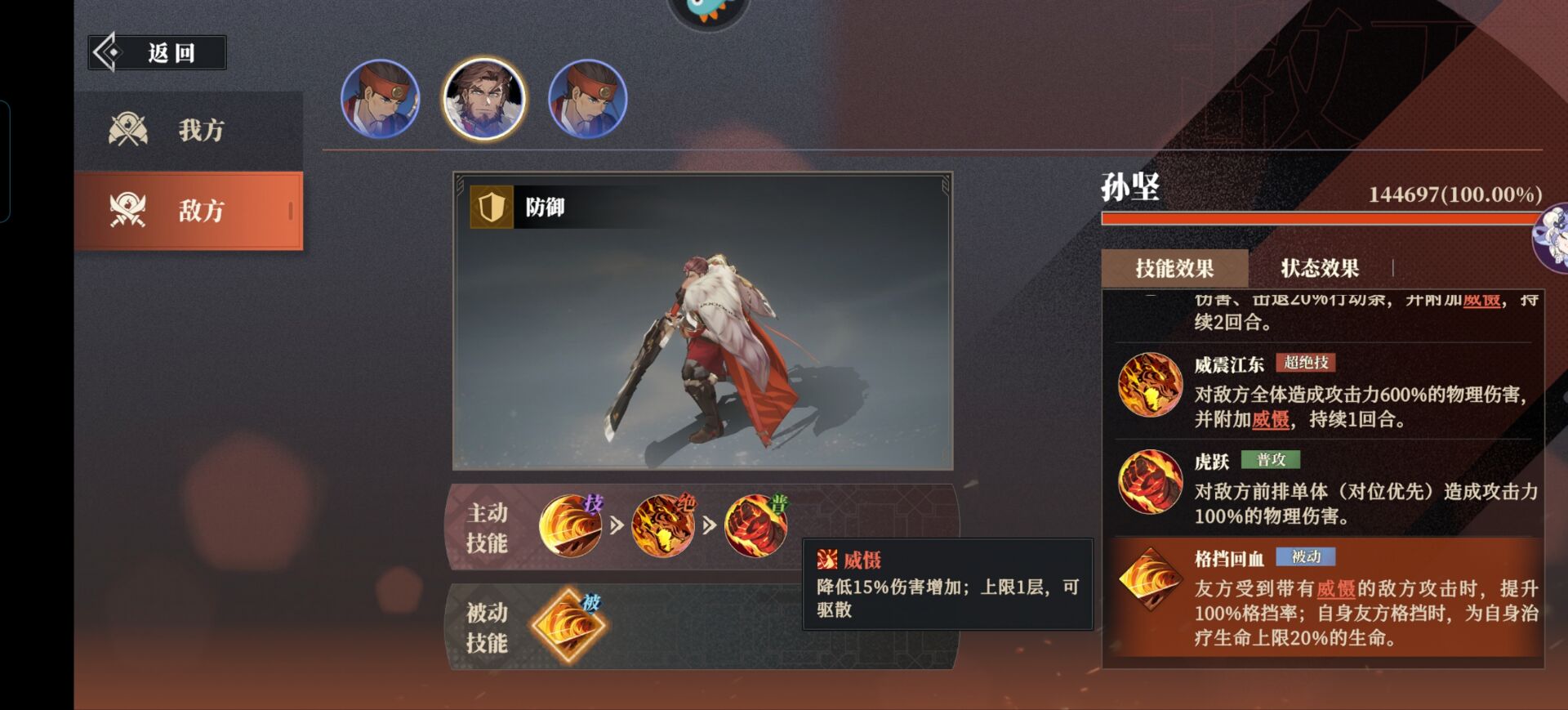 ①如何【调整站位】?孙坚可以给我们挂【威慑】的技能有绝技和超绝技。