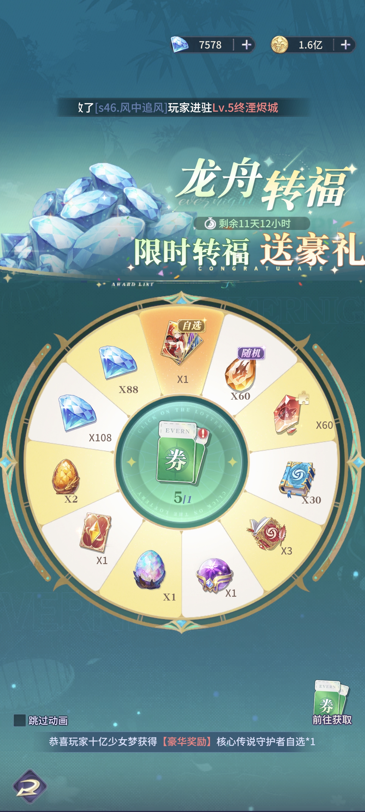 活动持续12天,玩家共计可白嫖65张转盘抽奖券,欧皇还是非酋,就在这次转盘了。