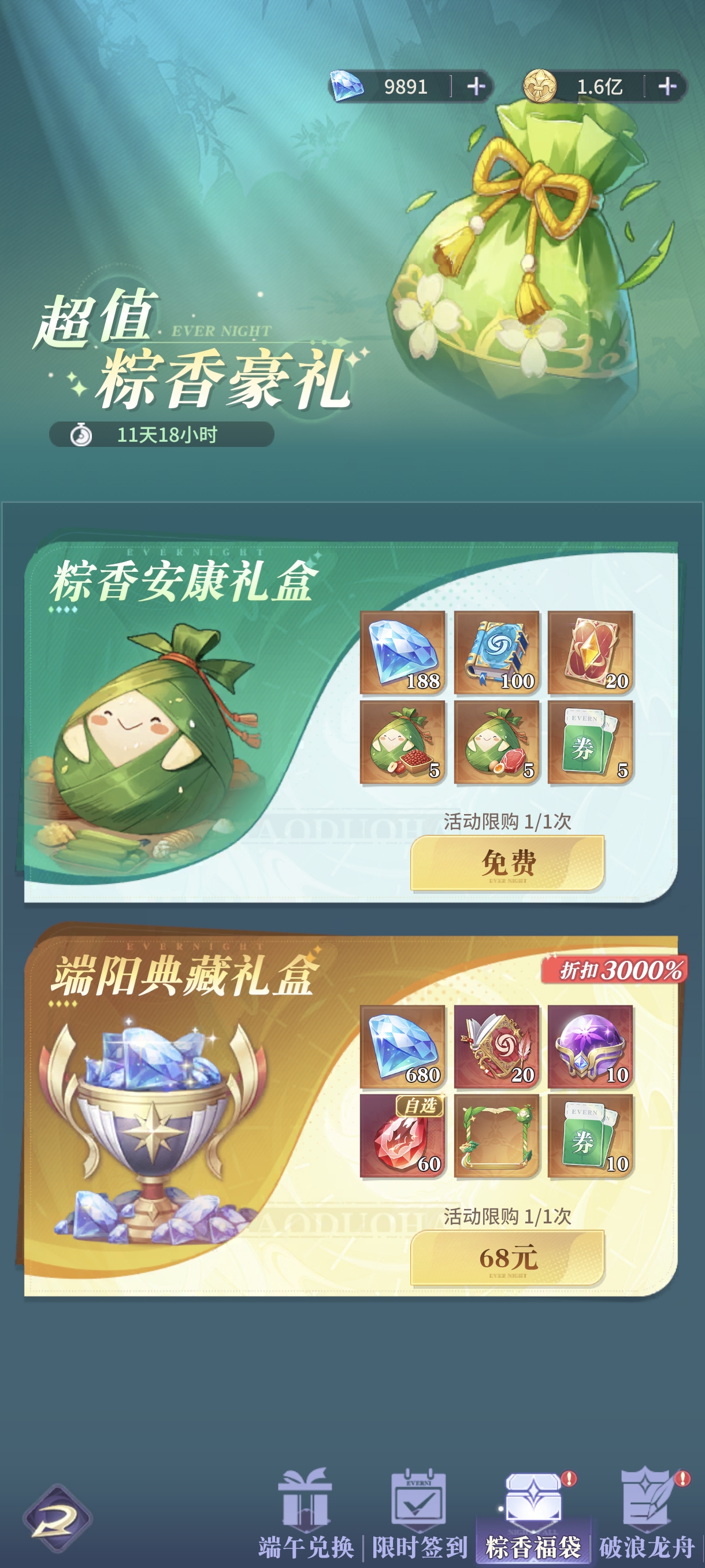 端阳典藏礼盒,氪金68块礼盒,包含10连水晶抽、自选红圣龙、10张转盘抽奖券等奖励,性价比非常不错。