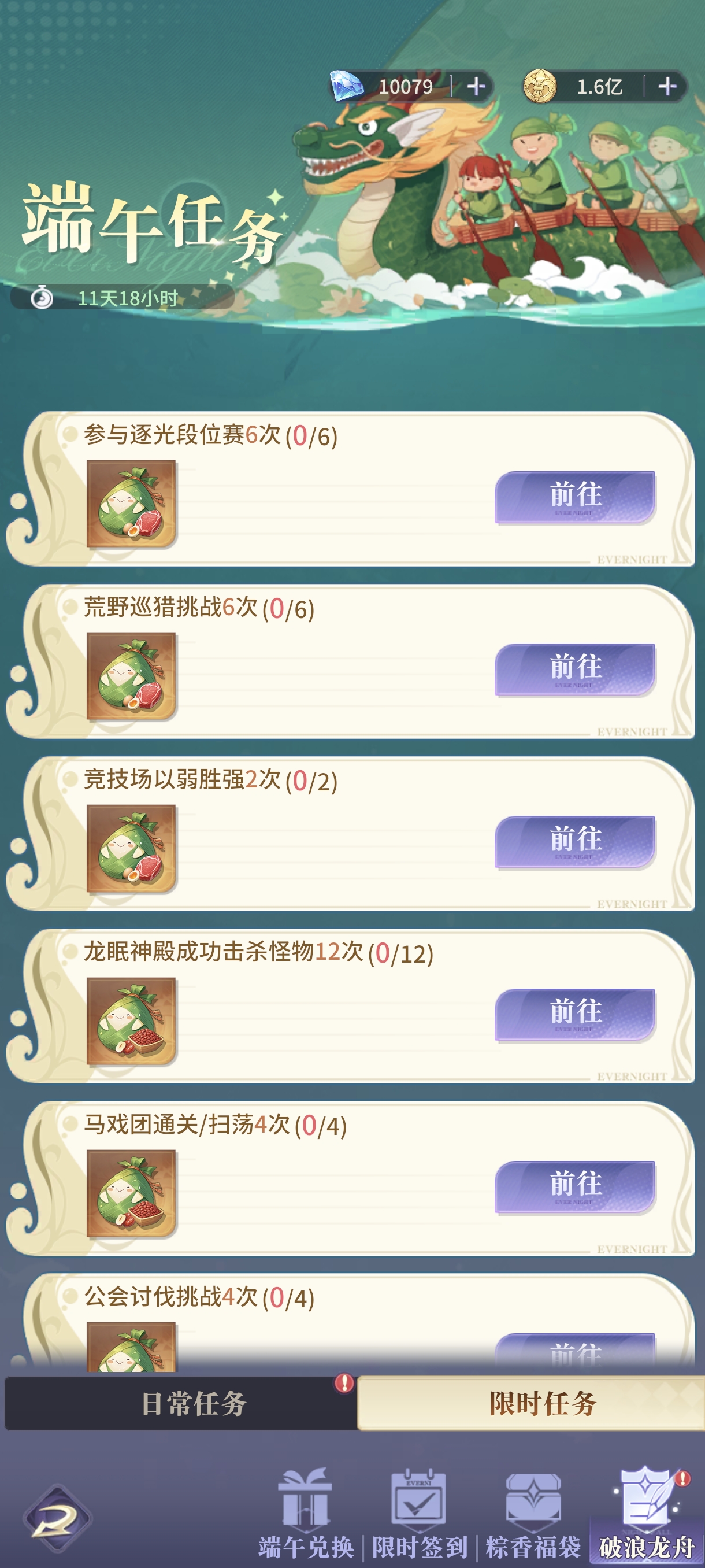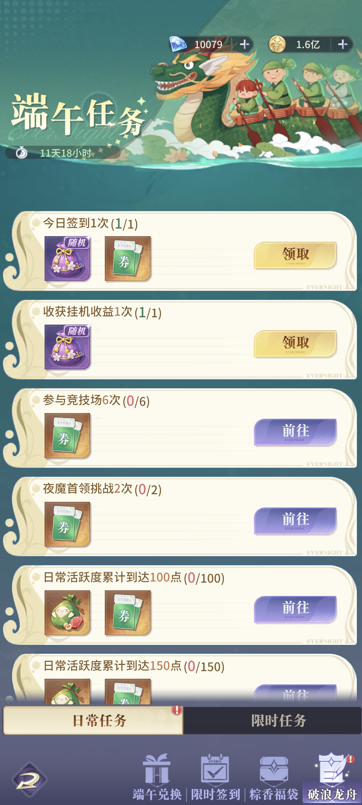 三、端午任务完成每日日常任务和活动限时任务,即可获得大量转盘抽奖券、粽子材料等奖励。