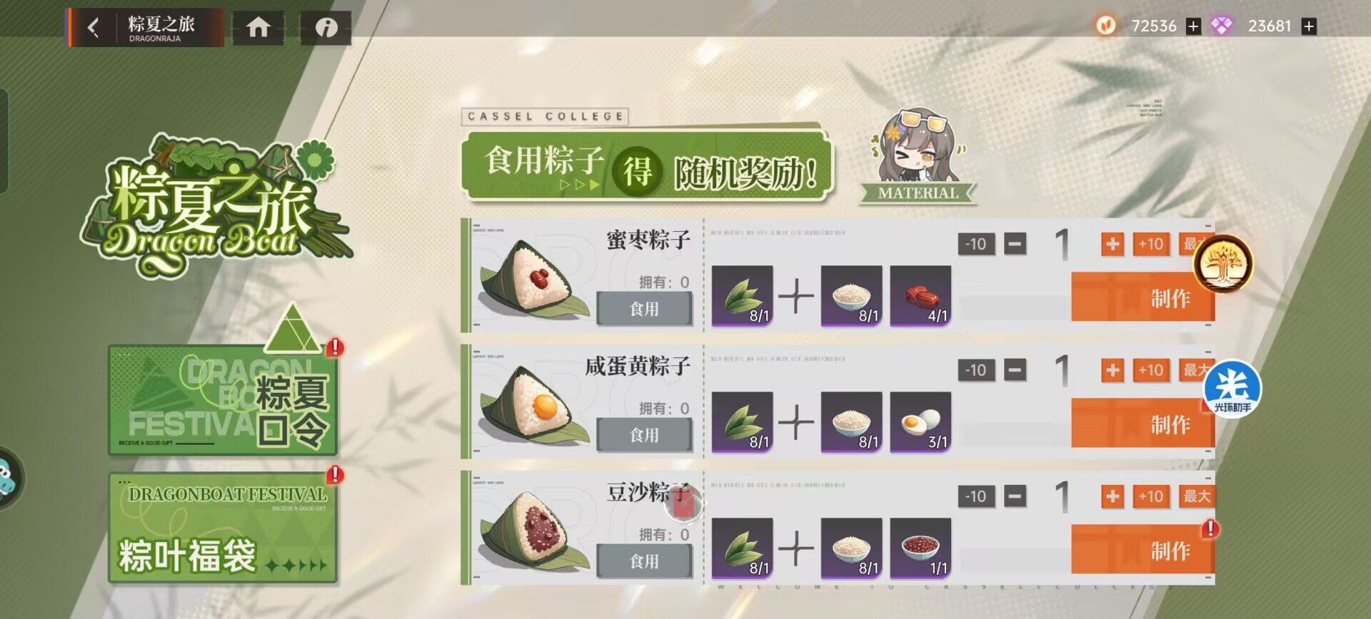 1:【粽夏之旅】优先制作推荐。这里主要是制作粽子的玩法。