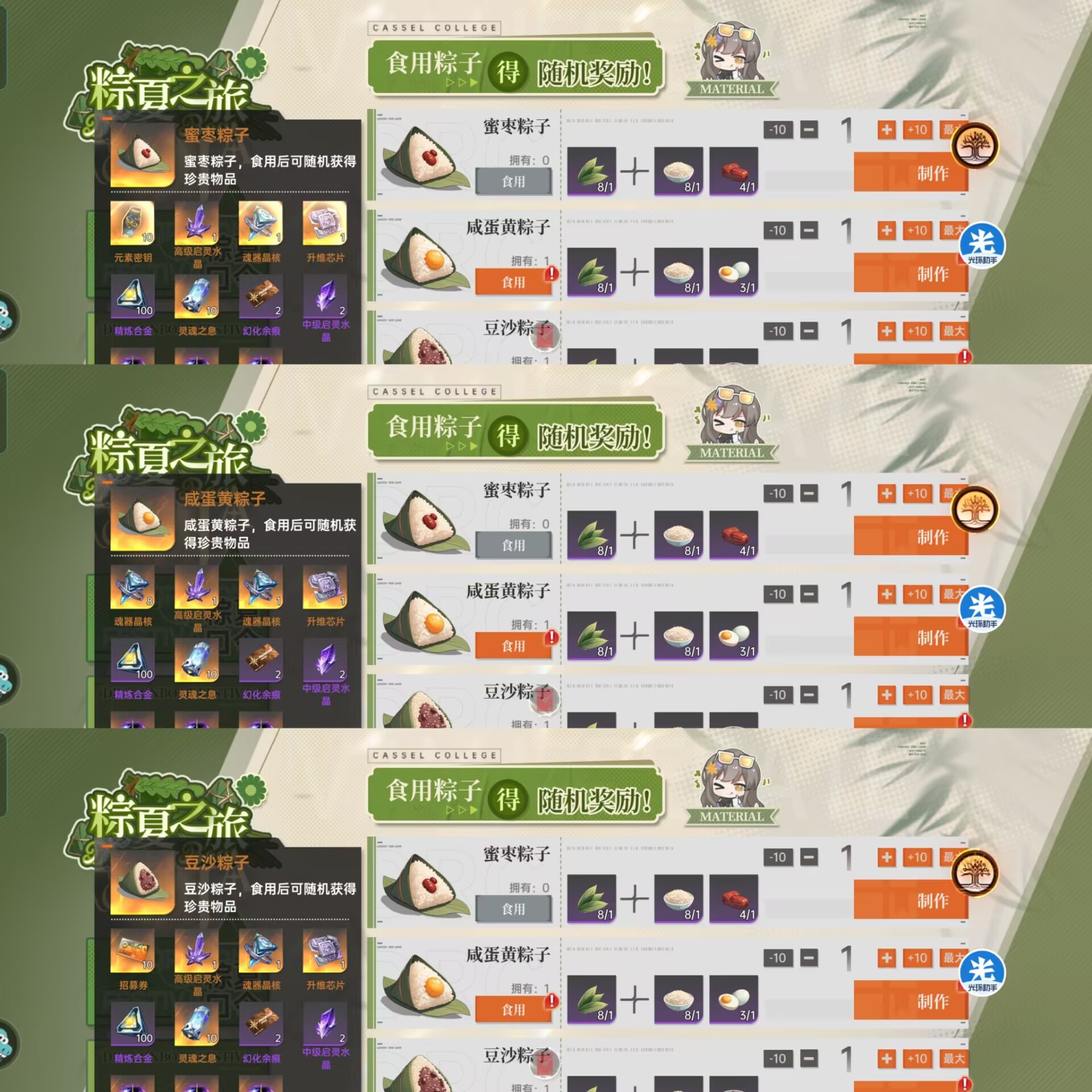 这里有玩家会问了:这三种粽子优先制作哪个?主要是看自己的需求来兑换。