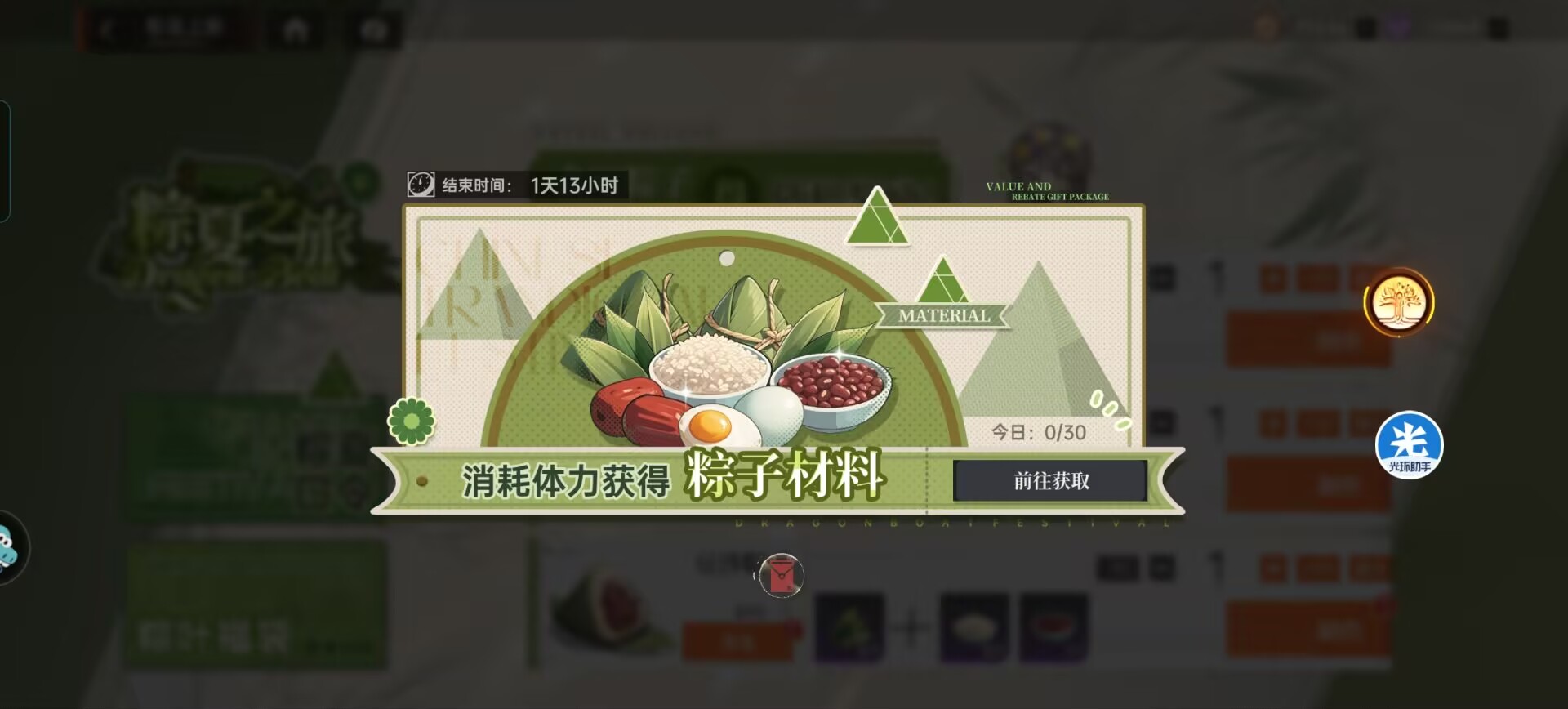 主要是通过消耗体力来获得【粽子材料】来制作【粽子】。